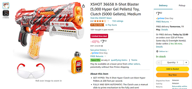My kids have been after a gel pellet blaster and this one is such a bargain that I'm snapping one up for a birthday present. The X-Shot Hyper Gel Clutch Blaster set is down to just £7.82 at Amazon, making it almost half the recommended price of £14.99.
