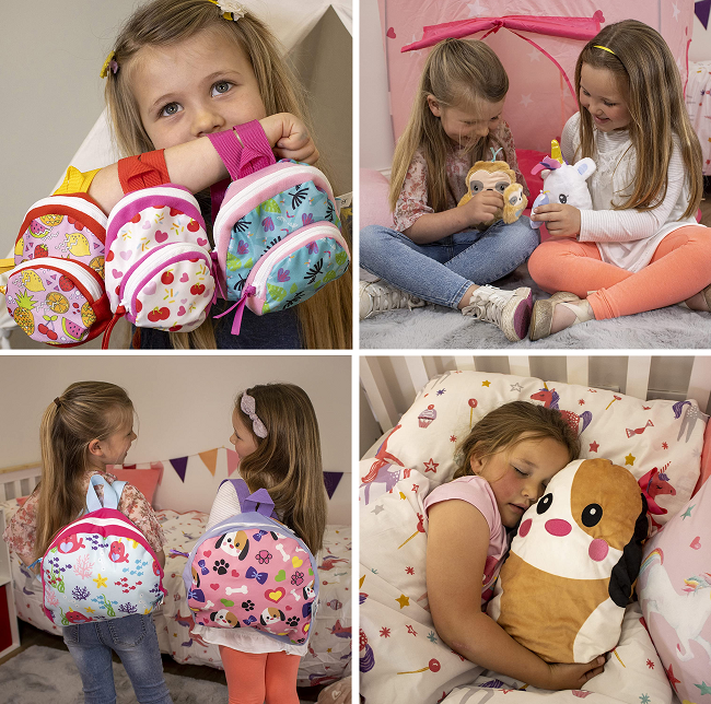 There's also this larger Zipstas Snuggle Pals 2-in-1 Girls Sleepover Bag*from only £5.66 and I think that's the best value for money. It's a full-sized backpack that can hold everything you child needs for a sleepover like their pyjamas and toothbrush, and then they can flip and reverse it so that it makes a super cuddly toy to comfort them as they sleep.