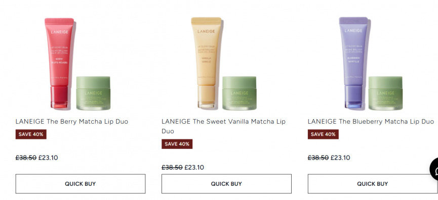 As a big fan of Laneige products I had to snap up these bargains I spotted at LOOKFANTASTIC. They currently have 40% off their Laneige Matcha Lip Duo's making them just £23.10 instead of £38.50! There's three sets to choose from, I have a feeling they are going to be popular.