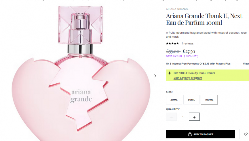 A few days ago we showed you the half price Ariana Grande God Is A Woman Eau de Parfum 100ml at LOOKFANTASTIC but now they have another Ariana fragrance bargain for us! The Ariana Grande Thank U, Next Eau de Parfum 100ml also has 50% off and free delivery! Get it for just £27.50 delivered down from £55.