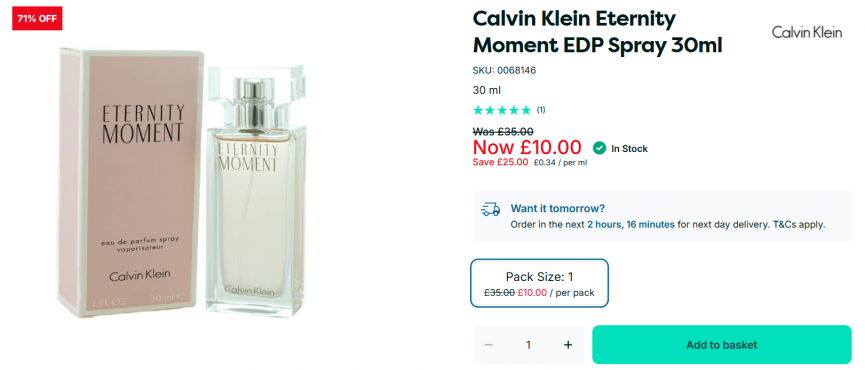 This is an absolute bargain for a bottle of designer fragrance! Pharmacy2U have dropped the price of this Calvin Klein Eternity Moment EDP Spray 30ml to only £10 instead of £35. It would make a lovely gift and at just £10 you can't go wrong!