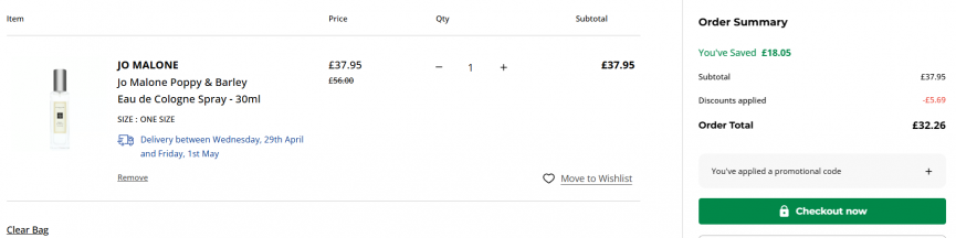 Wow, it's not very often you see Jo Malone fragrances for less than £35 but that's exactly what we have found at Secret Sales! The popular Jo Malone Poppy & Barley Eau de Cologne Spray 30ml ca be yours for just £32.26 when you use the discount code PAYDAY15 at the checkout. This same fragrance is selling elsewhere for £56!