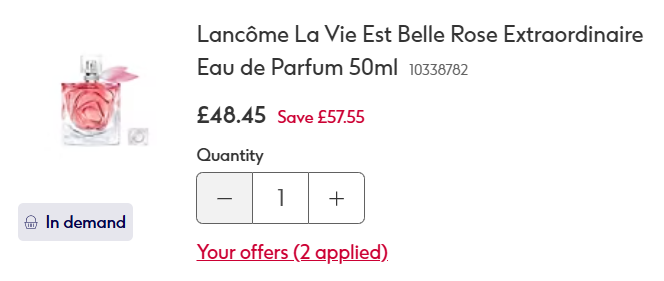 Wow, now this is a bargain from Boots that you won't want to miss out on if you're a fan of Lancôme fragrances. The Lancôme La Vie Est Belle Rose Extraordinaire Eau de Parfum 50ml is now better than half price at £51 instead of £105. However add the discount code FRAG5 at the checkout and it takes another 5% off which makes it just £48.45 with free delivery!