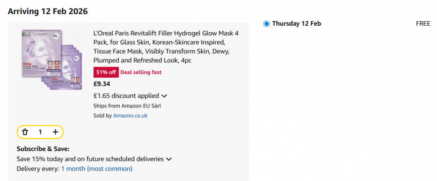 I have been desperate to get my hands on the brand new L'Oreal Paris Revitalift Glass Skin Hydrogel Glow Mask that everyone on their socials is raving about! They have sold out in so many places and can be hard to get hold of but I have just managed to order a pack of four at Amazon for only £9.34 with Subscribe and Save instead of £15.99!