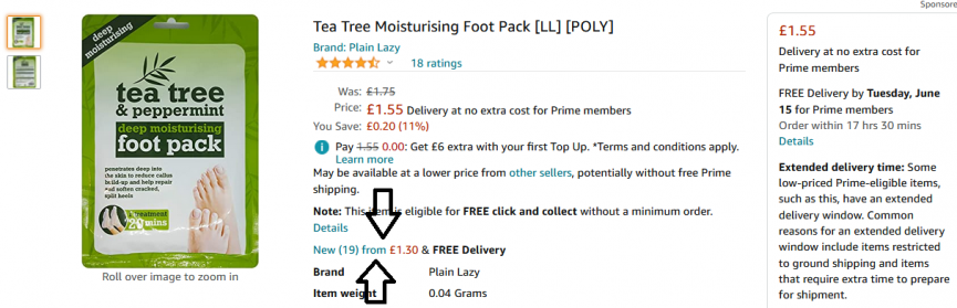Make sure to select HQ Essentials on the sellers list to get them for £1.30 each, like below.