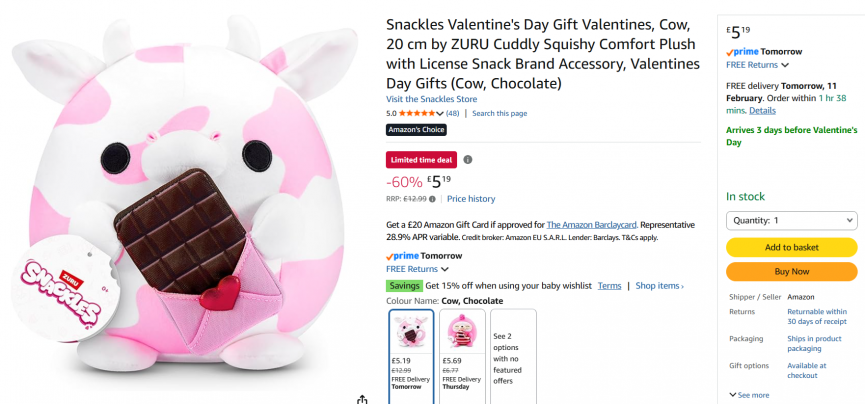 - Click here to view the Snackles Valentine's Day Cow for £5.19 @ Amazon*